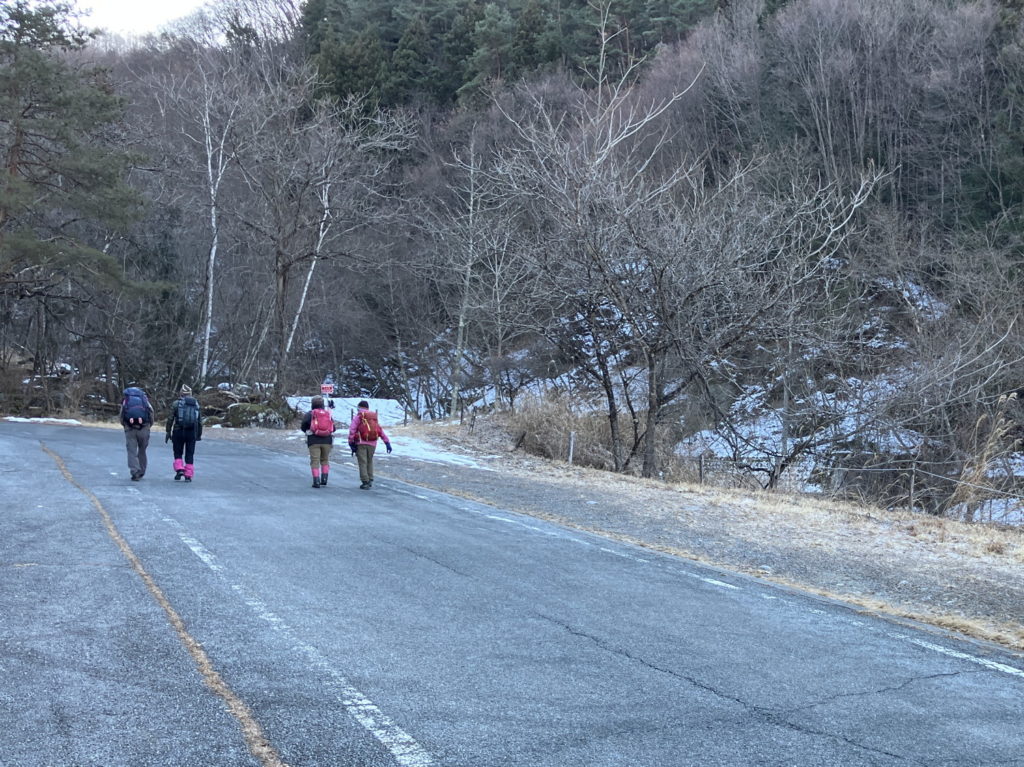 一路大野峠目指す平らな歩き易い道で、筆者、見事に転倒、皆さん心配の声を頂き、汗顔の極み。反省です。大野峠からは、ひたすら下りが続き大野峠登山口に。暗い山道から、明るい日差しの道に。一息入れて、最後の長い車道歩きを経て、芦ヶ久保駅に到着。全員元気に、ここで解散! (TI)