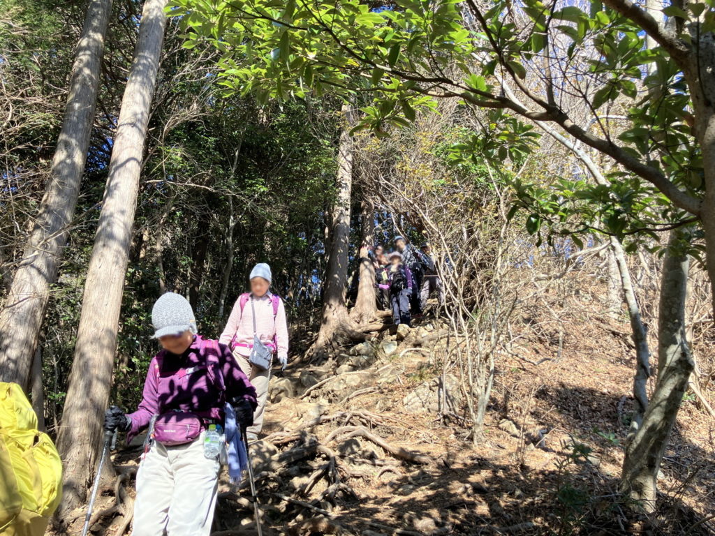 投稿日: 2026年1月17日2026年1月18日 投稿者: TTC HP秦野の弘法山 <C山行> 1月14日(水) この山行は,聖峰と念仏山を含む保国寺から善波峠までのエリアとその後の弘法山と権現山のエリアを含む。江ノ島、房総半島、東京・横浜方面、丹沢山系、筑波山までよく見え、飽きない山行であった。(山と渓谷オンライン地図にマージ) 登山開始してすぐに現れた男坂。体力も十分にあり、難なく登れた。その先には、聖峰が待っていた。 聖峰に到着 聖峰はウメの花が見頃だった 横浜方面の展望、左奥には今度行く筑波山もよく見えた 念仏山・髙取山への分岐、軽く燃料補給 分岐から念仏山へ向かう、最初の急勾配を慎重に下る この区間、樹々の間から富士山が見えます 念仏山で昼食、ここからも遠くまで見渡せた 善波峠、左へ回る迂回路 (200 m 先を右折)と、やや左からこの崖の上部 (約5 m) に出る直線コースの二者択一の場面。結局、急がば回れした。 弘法山に到着 弘法山にて 権現山の展望台 (お勧め場所) タマネギ石 (“平塚市博物館” と “タマネギ石” で検索)
