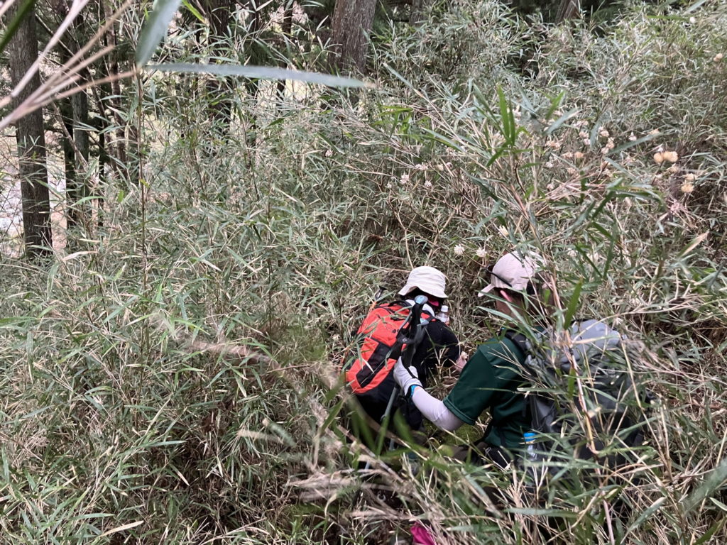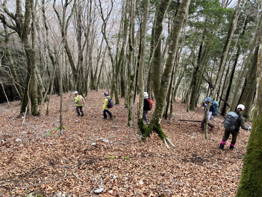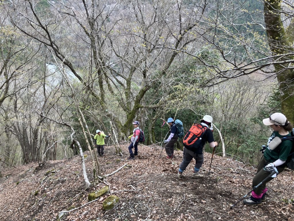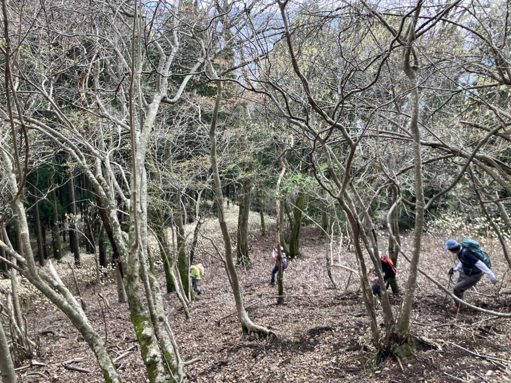 4月5日(日)前日までの雨が上がり、爽やかな青空の下、西丹沢のミツマタ群生地を巡りました。急登あり、落ち葉で滑りやすいザレ斜面あり、ミツマタの茂みへの突入あり、最後は藪漕ぎでの下山と、バリエーションルートを満喫しました。