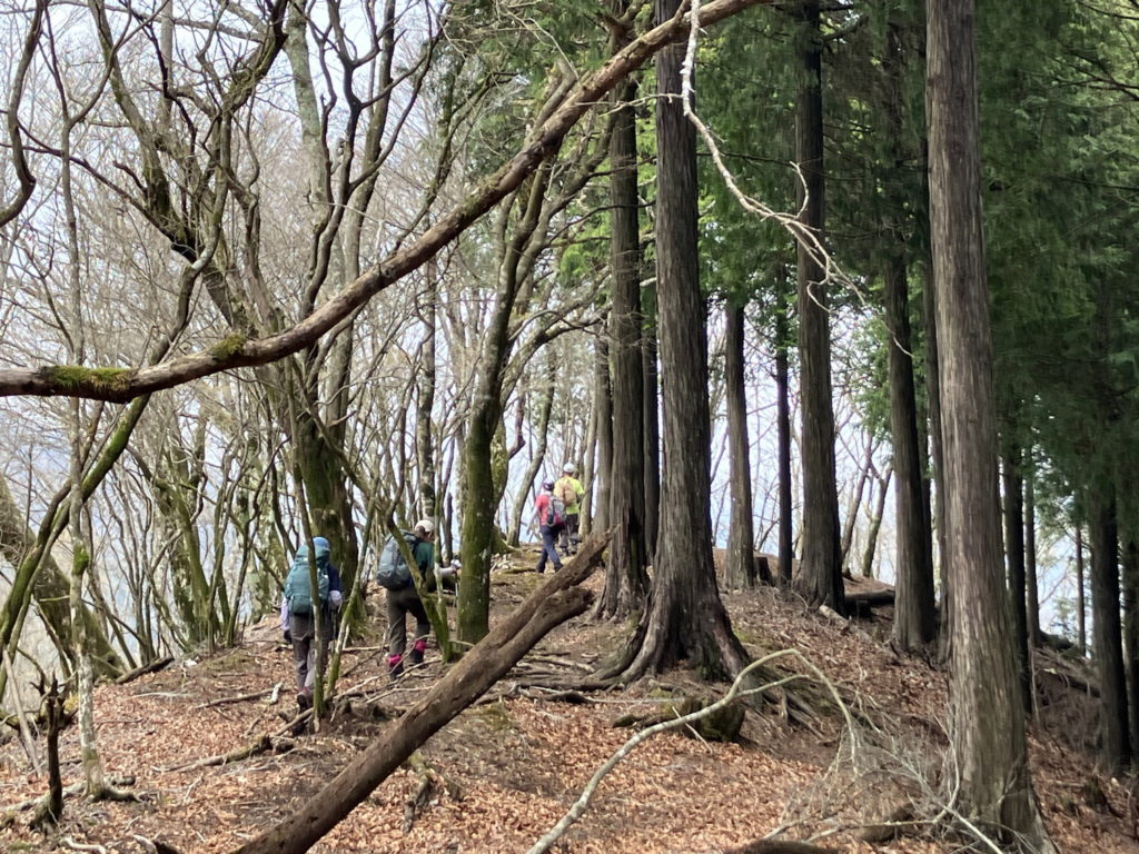 落ち葉で滑りヒヤリとする場面もありましたが、それも含めて楽しいルートでした。会長が3度探しても見つからない西の尾根分岐(650m地点)を目指して、地図読みスキルを磨きリベンジしたいと思います。(HO)